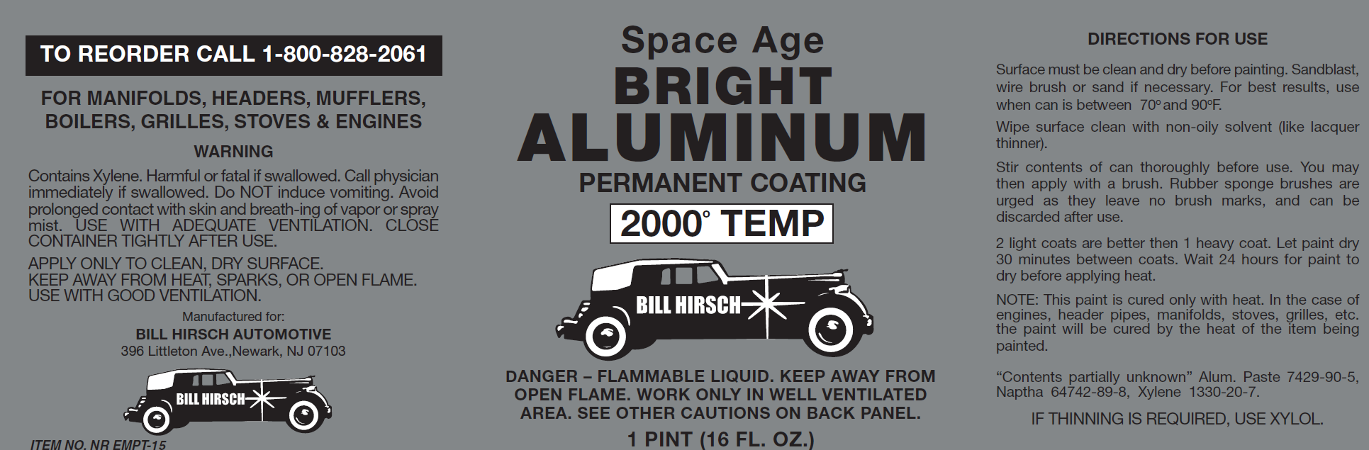 Steel or Aluminum Headers: These must be primed with a High Temperature Primer (also available from Bill Hirsch) before applying the paint.Big Block Engines: This product is not recommended for use on steel or aluminum headers for big block engines.